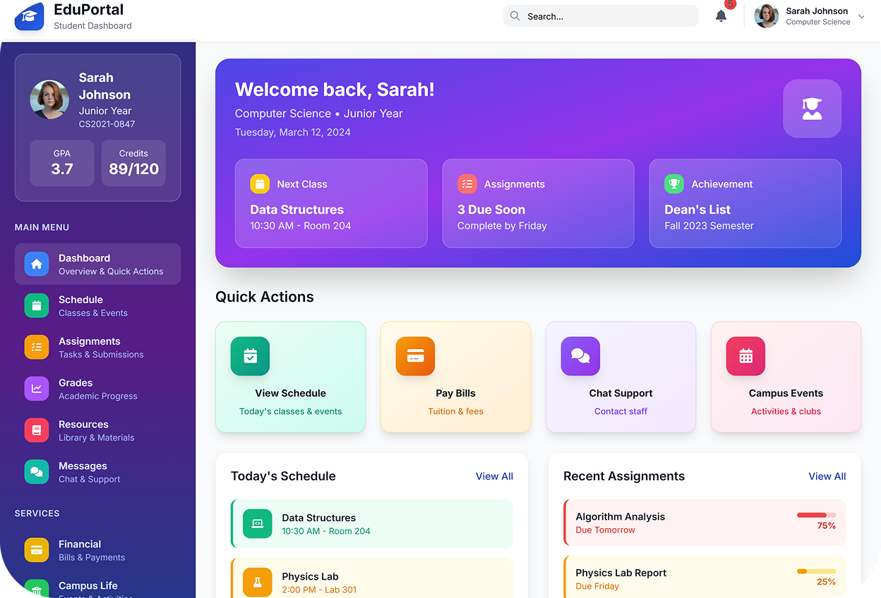 We created a student community manager enabling institutions to engage learners, foster collaboration, and centralize events, announcements, and peer interaction in one platform.